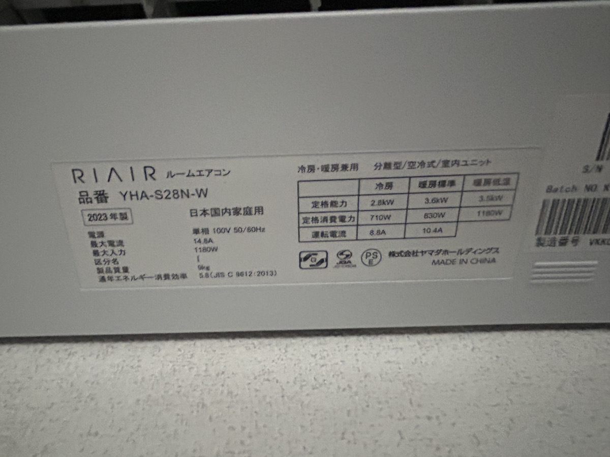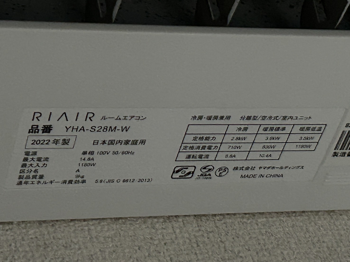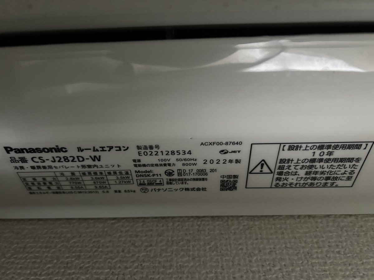 - 状態:動作良好、室内機・室外機ともにきれい